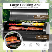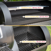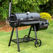 Free-standing 36” Barrel Charcoal Grill w/Offset Smoker